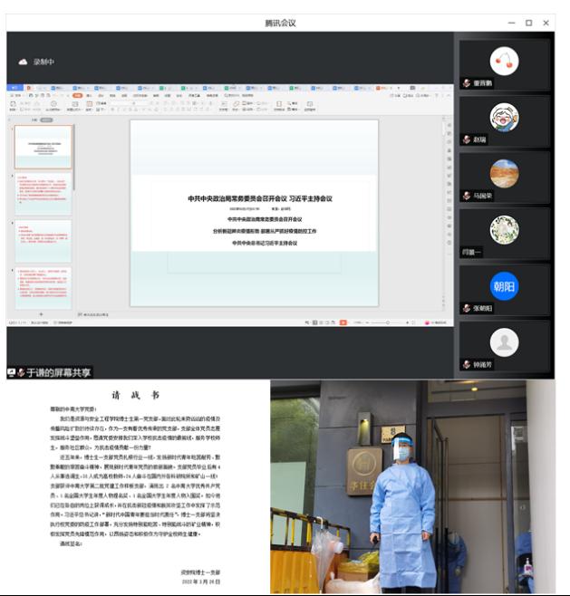 4月7日下午,taptap,点点在线平台,点点登录入口博士一支部开展“我为抗疫做贡献”主题党日活动,受疫情影响,活动采用线上形式进行。活动邀请了院党委副书记马国荣及学院2020届毕业生、上海市选调生王钧晖同志参加。