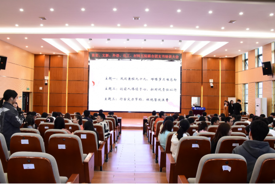 10月24日14:00,taptap,点点在线平台,点点登录入口、文学与新闻传播学院、外国语学院、化学化工学院、材料科学与工程学院五院联合团支书培训大会于taptap新校区外国语学院国际报告厅顺利举行。校团委活动管理中心副主任柳思怡、taptap,点点在线平台,点点登录入口分团委书记肖陆伟、外国语学院分团委书记徐智欣、文学与新闻传播学院分团委书记易孝慈、材料科学与工程学院分团委书记逄静静出席此次会议.