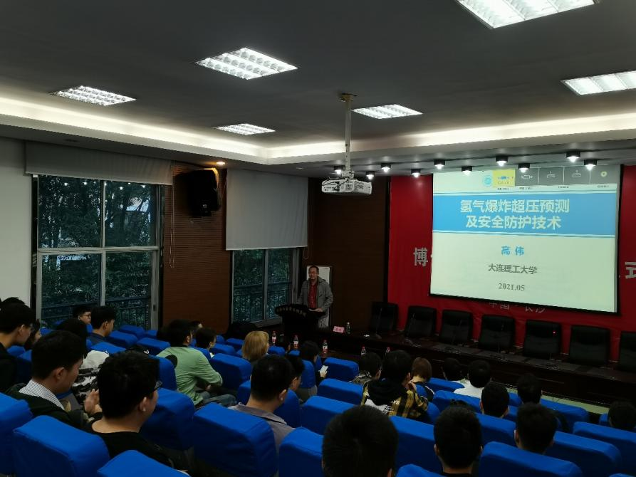 讲座之初,高老师从环保和经济的角度出发,向大家讲解了我国目前的氢能源需求与开发氢能源的背景意义,并介绍了有关氢气制造、输运、储藏的内容,强调到过程中的安全尤为重要。此外,对氢气的泄放过程进行介绍,建立了耦合泄放压力及泄放火焰的爆炸安全泄放模型,提出了适用于高压工况的爆炸安全泄放方法。讲座中还提及了氢气爆炸抑制装备及技术、新型氢敏传感材料等内容。