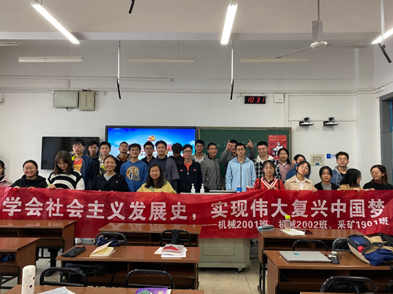 学习社会主义发展史,就是学习党的艰辛史。建党百年,不忘初心,方得始终。为了响应上级党组织的号召,提升广大青年团员的思想素质,10月9日至17日期间,采矿1901团支部、机械2001团支部和机械2002团支部联合开展了以“学习社会主义发展史,实现伟大复兴中国梦”为主题的团日活动。