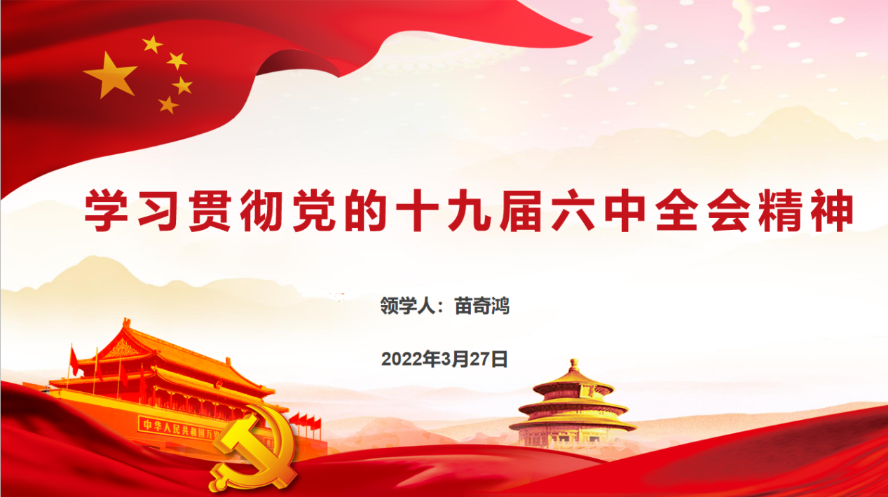 会议伊始,曹继伟同学带领同学们学习了党的十九届四中全会精神。党的十九届四中全会是在庆祝新中国成立70周年的重要节点,向全面建成小康社会、实现第一个百年奋斗目标迈进的关键之年召开的一次重要会议,是一次对国家制度和国家治理体系问题进行开创性研究和系统性解决的中央全会。随后,李智辉同学带领学习了党的十九届五中全会。党的十九届五中全会着眼战略全局,对 “十四五”时期文化建设作出部署,明确提出到2035年建成文化强国的远景目标,这为我们在新发展阶段繁荣发展文化事业和文化产业、提高国家文化软实力提供了“时间表”和“路线图”。最后,苗奇鸿同学带领学习了党的十九届六中全会及中国共产党第十九次全国代表大会。党的十九届六中全会审议通过的《中共中央关于党的百年奋斗重大成就和历史经验的决议》,全面总结了党的百年奋斗重大成就和历史经验。