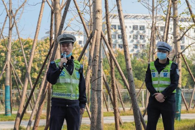 活动第一项,警官进行交通安全宣讲。在宣讲过程中,警官通过头盔展示以及发放宣传手册的方式,并以身边的事故为例,来讲述骑行电动自行车时佩戴头盔的正确方法以及交通事故的处理方法,除此之外,他还强调了佩戴头盔的重要性