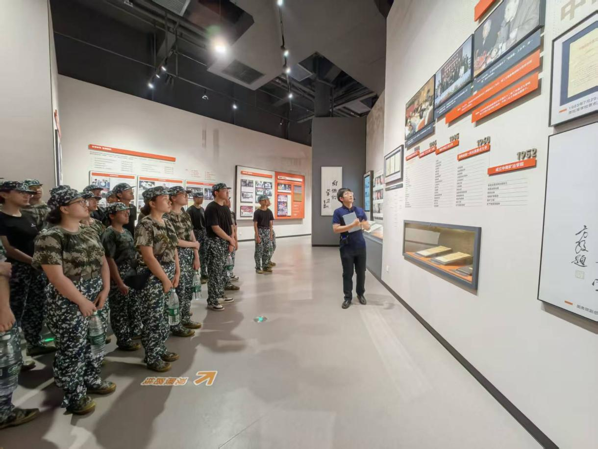 在校史馆专业讲解员的引导下,学院军训编队三连同学们有序参观了校史陈列区,通过珍贵的历史照片、实物展品和多媒体影像,深入了解建校至今的发展历程。讲解员重点介绍了学校在冶金、矿业、医学等优势学科的突出贡献,以及近年来在轨道交通、新材料、人工智能等新兴领域的创新突破。