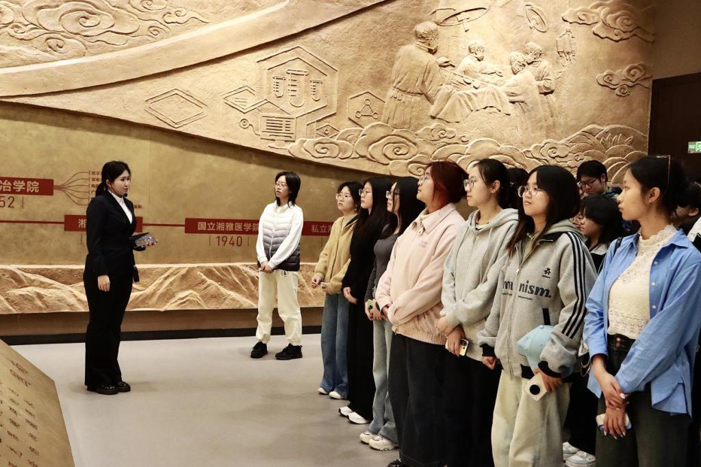 活动伊始,在讲解员的带领下,同学们有序进入校史馆,系统学习taptap从建校至今的发展历程,深入了解学校在不同历史时期的办学成就与精神传承。讲解重点围绕学校发展历程中的杰出校友、革命先烈与学术先贤展开,从建校初期的筚路蓝缕,到一代代先贤为学校发展、国家建设奉献终生的事迹。同学们在沉浸式参观中,深刻感悟了中南人“知行合一、经世致用”的精神传承,读懂了信仰的力量与奉献的价值。