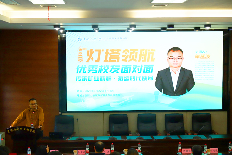 为帮助2025级新生明晰专业发展方向、把握矿业行业前沿动态,4月22日下午15时,学院在岳麓山校区采矿楼T-302成功举办“灯塔领航——优秀校友与青年学子面对面”(第七期)。活动邀请和静县备战矿业有限责任公司副总经理牟延波,结合自身十七年从业经历,为同学们带来一场务实深刻的职业分享会。紫金(长沙)工程技术有限公司副总经理仵锋锋,紫金矿业集团人力资源部人才发展中心主任林晞,学院副院长黄锐,辅导员于谦、王子涵、黄佳星,以及本科2025级采矿工程专业全体学生参加到本次活动中。