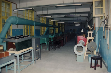 1956年采矿楼竣工,将一楼东头作为矿山通风实验室,采矿楼外还开设一条一百多米长的地下通风巷道。1957年,教研室老师们就开始了自己动手设计加工矿井通风系统和构筑物模型,建造的通风实验装置能够开出点压力测定、风速剖面测定、摩擦阻力系数测定、局部阻力系数测定、角联风路风流方向测定等项目,该实验室一直使用到2006年才重建。