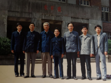 图3 1988年,通风教研室杨华保老师从德国访学回校时与教研室老师和系领导一起在采矿楼前合影