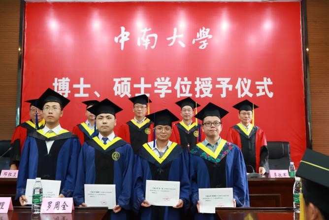党委欧旭理书记宣读了2019届湖南省优秀毕业研究生名单并为4名同学颁发了证书。马国荣书记宣读了硕士和博士学位授予名单。王秉和李科明同学分别代表博士和硕士毕业生发表毕业感言,恳切的言辞中饱含着对师友的感恩、对母校的不舍以及对前途的期许。教师代表潘伟老师寄语毕业生,希望毕业生能在今后的学习和工作中扎根实践、坚守底线并感恩善良,不长的话语中满是对毕业生的希望和祝福。院长罗周全教授在致辞中首先表达了对毕业生们的衷心祝贺,并向毕业生们提出四点要求:第一,希望大家做一个有理想的人,“胸怀大志,志存高远,努力成为可堪大用、能担重任的栋梁之材”;第二,希望大家做一个有担当的人,“作为新时代中国青年要担当时代责任。时代呼唤担当,民族振兴是青年的责任”;第三,希望大家做一个独立思考的人,以理性武装大脑,以思考战胜愚昧,不做别人思想的奴隶;第四,希望大家做一个勇于创新的人,勇于创新、坚持创新、始终创新,实现自我突破和发展,让技术和行业实现长久的发展。