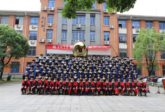 授予学位环节,导师们依次为2019届全体毕业研究生授予学位证书。仪式结束后,导师们与毕业生于采矿楼前集体合影留念。