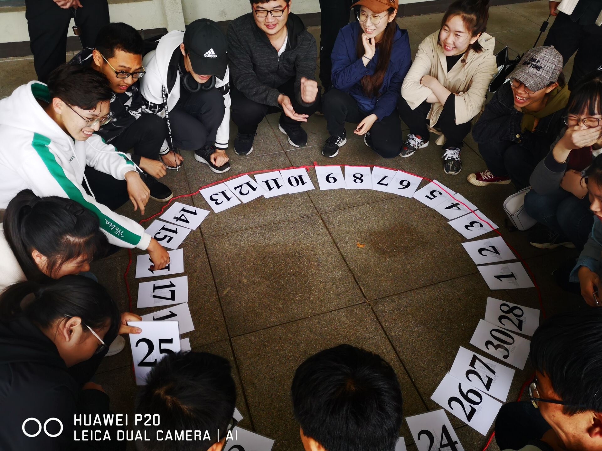 绵绵细雨虽恼人,却抑制不住同学们参与比赛的热情。“盲行勇士”、“巨人脚步”、“同心鼓”、“极限时速”四个富有思想性、挑战性和趣味性的游戏极大考验着同学对规则的解读能力、相互配合能力以及反应能力。游戏的难度并未让热情消减,同学们积极探讨策略并配合参与练习寻找技巧。在“同心鼓”环节,同学们14人为一组,将鼓拉起,通过一次次的尝试逐渐掌握了团队配合方法和提高成绩的方法。而在“巨人脚步”的比赛中,同学们10人一组共同前行,整齐的口令声不时传来。比赛过程中,同学们欢乐的心情始终未减,欢笑声、口令声、欢呼声在场上缭绕,构成了细雨下最暖人的景色。经过最终比赛,土木安全类1829班以总成绩96分荣获比赛第一名,土木安全类1827、1818班分获第二、三名。