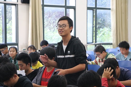 活动按计划进行至嘉宾分享环节,宣讲嘉宾尹嘉宇、赵泽宁分别向同学们讲述了自己参加志愿活动的经历。其中,尹嘉宇同学幽默风趣地和同学们分享了自己参加的几次大型活动的经历,介绍了与他一同参与活动的优秀志愿者,号召大家向他们学习,在保证学习质量的条件下,积极参与志愿活动,在服务社会的同时提高自己的综合素养。赵泽宁同学则是从资安院青志协工作出发,向大家介绍了如何在大学生活中寻找适合自己的志愿活动。两位代表的宣讲激起了同学们对参加志愿活动的热情,现场的气氛也越发活跃。
