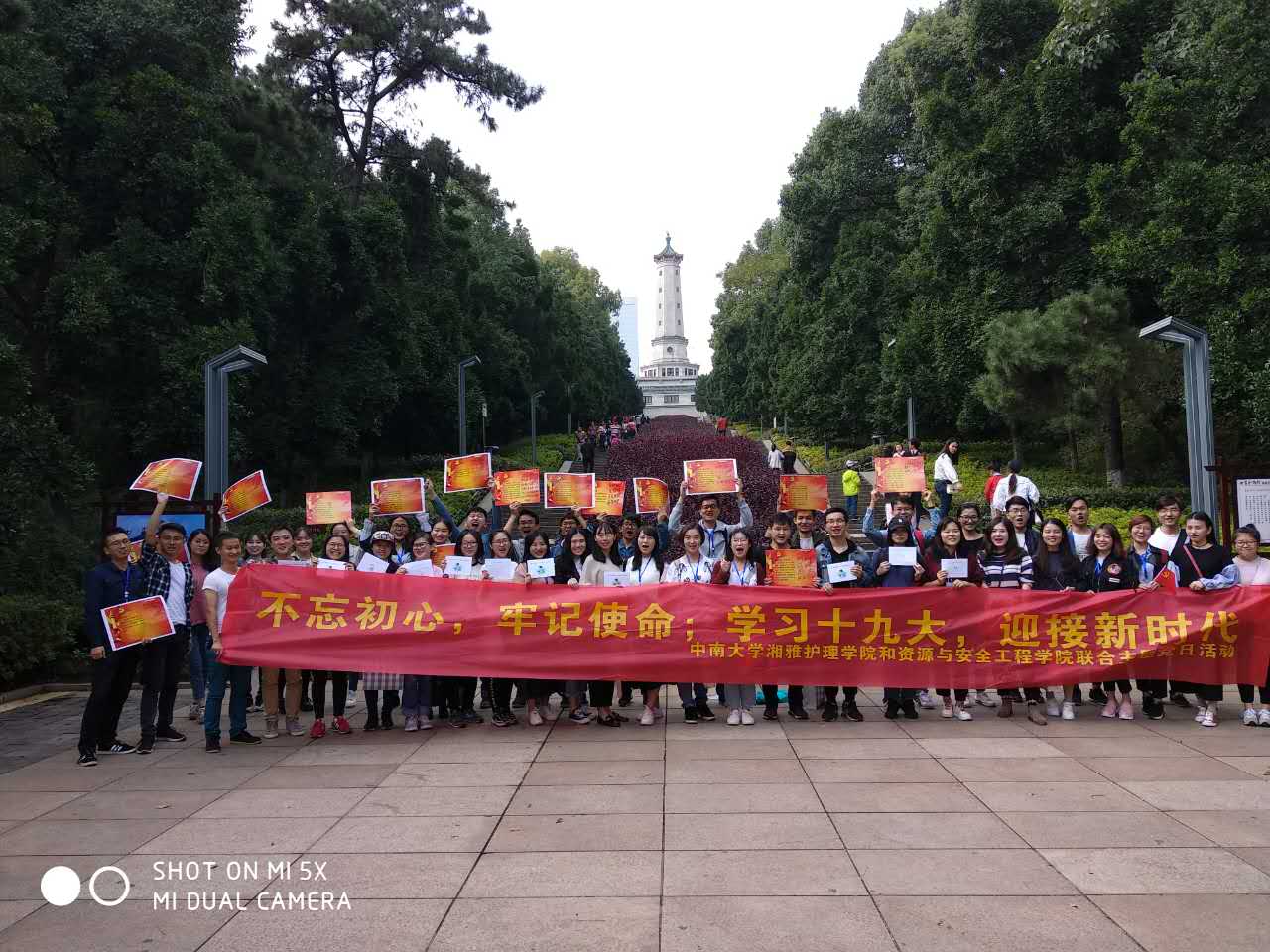 2017年10月29日,资安院硕士17级三支部联合湘雅护理学院研究生第三党支部在长沙市烈士公园举办“不忘初心,牢记使命;学习十九大,迎接新时代”主题党日活动,以富有实践意义的活动响应十九大的号召,学习宣传贯彻党的十九大精神,努力提高自己的政治素养和思想理论水平,以便更好地迎接新时代的到来。