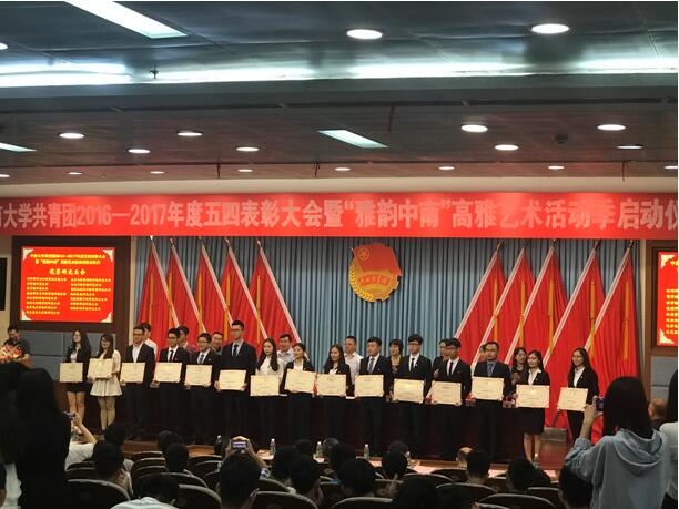 在“五四”青年节到来之际,共青团taptap委员会举办了2016-2017年度五四表彰大会暨“雅韵中南”高雅艺术活动季启动仪式,我院荣获了“五四红旗团委标兵”、“优秀研究生会”、“优秀学生会”、“‘青春向学’学风建设先进集体”、“新媒体工作奖”等荣誉称号。