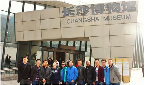 上午九点,留学生们从校本部出发,经半个小时车程后抵达目的地。留学生们首先参观了长沙市规划展示馆,他们在现代化的先进科技带领下畅游长沙全城。屏幕上光影变换,展现着长沙的历史变迁,巨大发展。同时,馆内逼真的人物蜡像更是吸引了留学生们的目光。当整个长沙地区的沙盘图展现在留学生们眼前时,面对全长沙的风貌,留学生们不禁为之侧目,啧啧称奇。“原来两地相距这么远,平常没有感觉,在地图上才发现简直跨越半个市了!”来自蒙古的留学生贾高同学指着地图上taptap和长沙南站,用着不怎么流利的普通话感叹道。其他留学生同学也不禁发出感慨:“中国发展迅速,经济繁荣,人民热情”;“感谢学校和学院对他们关心和帮助”;“非常喜欢长沙、喜欢中南,也会传递这份关怀给他们的家庭”。规划馆的参观使留学生们对长沙这个城市有了更多的了解。
