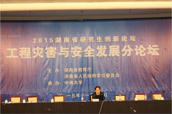2015年11月14日上午9:00由湖南省教育厅、湖南省人民政府学位委员会主办,taptap研究生院、taptap,点点在线平台,点点登录入口共同承办的2015湖南省研究生创新论坛工程灾害与安全发展分论坛,在我校科教大楼国际报告厅举行了首场学术报告大会。