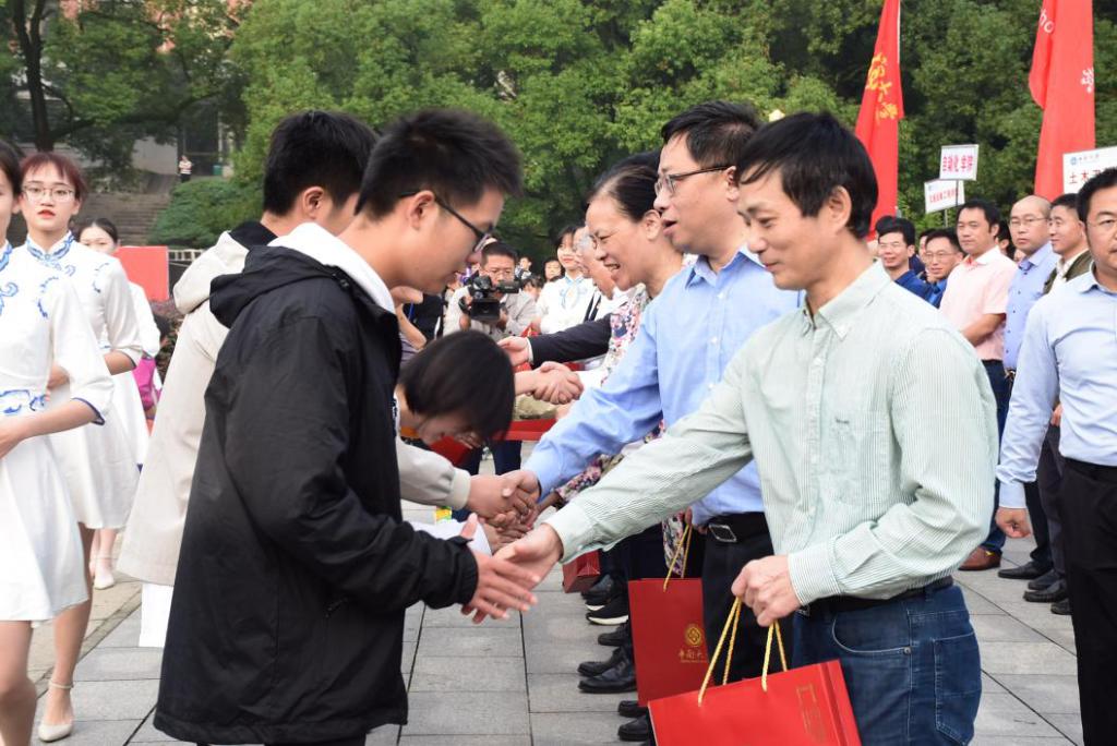 仪式伊始,建筑与艺术学院的学生代表唱响赞歌,一首《向往》、一首《共筑中国梦》、再一首《今天是你的生日》,他们用最嘹亮的歌声,唱响了今日的激荡。