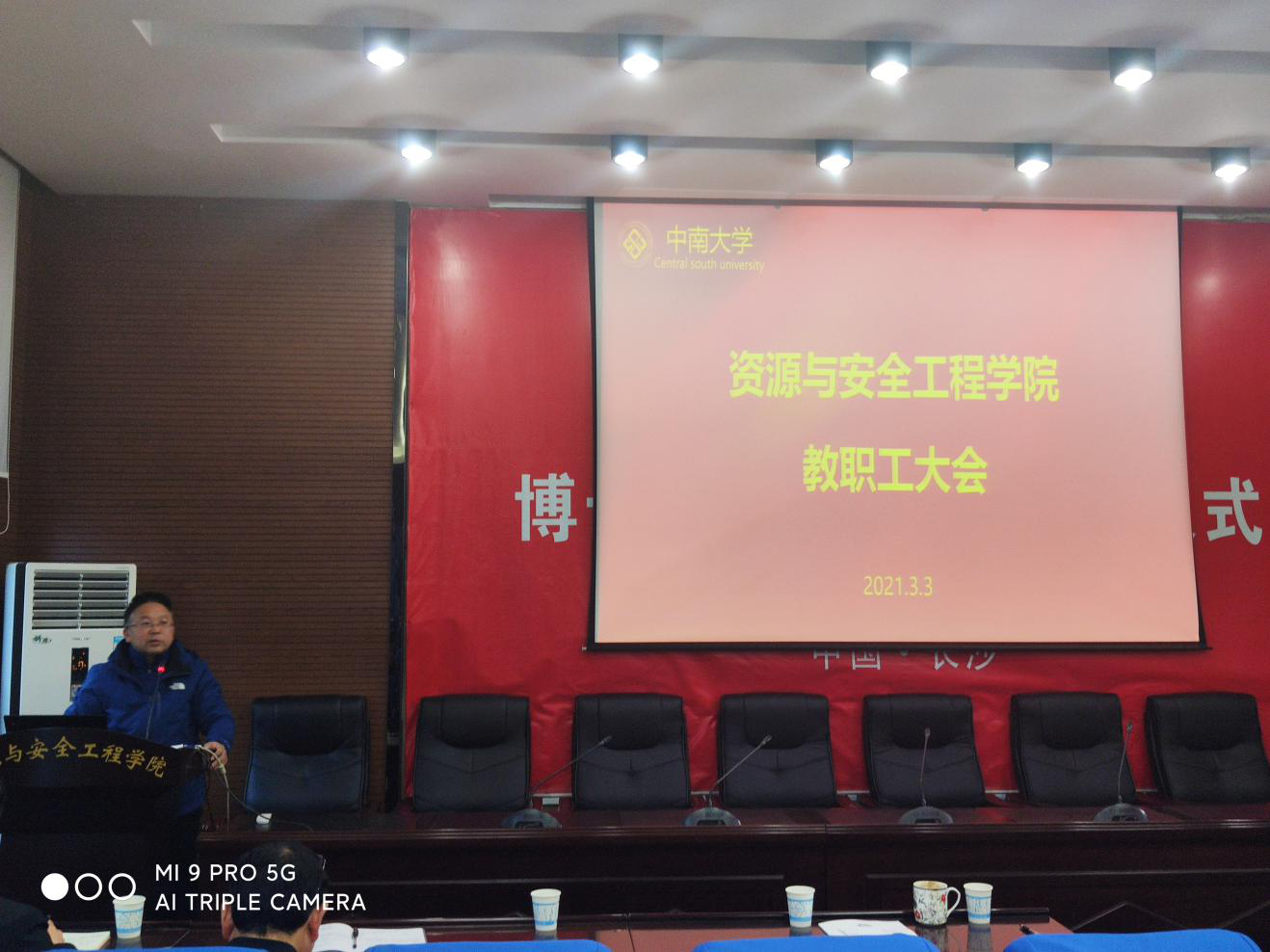 2021年3月3日下午,taptap,点点在线平台,点点登录入口在采矿楼302召开全院教职工大会。院党委书记欧旭理等全体院领导及教职工参加了会议,会议由主持学院行政工作的周子龙副院长主持。