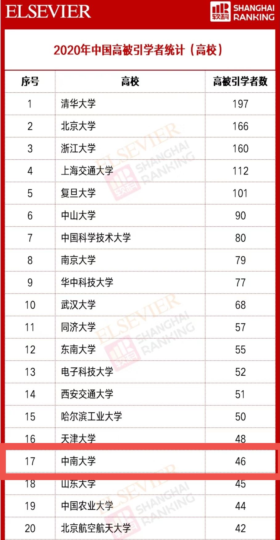 202年中国高被引学者统计(高校)