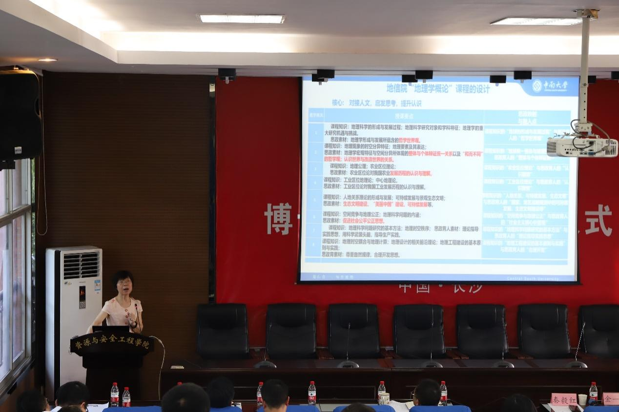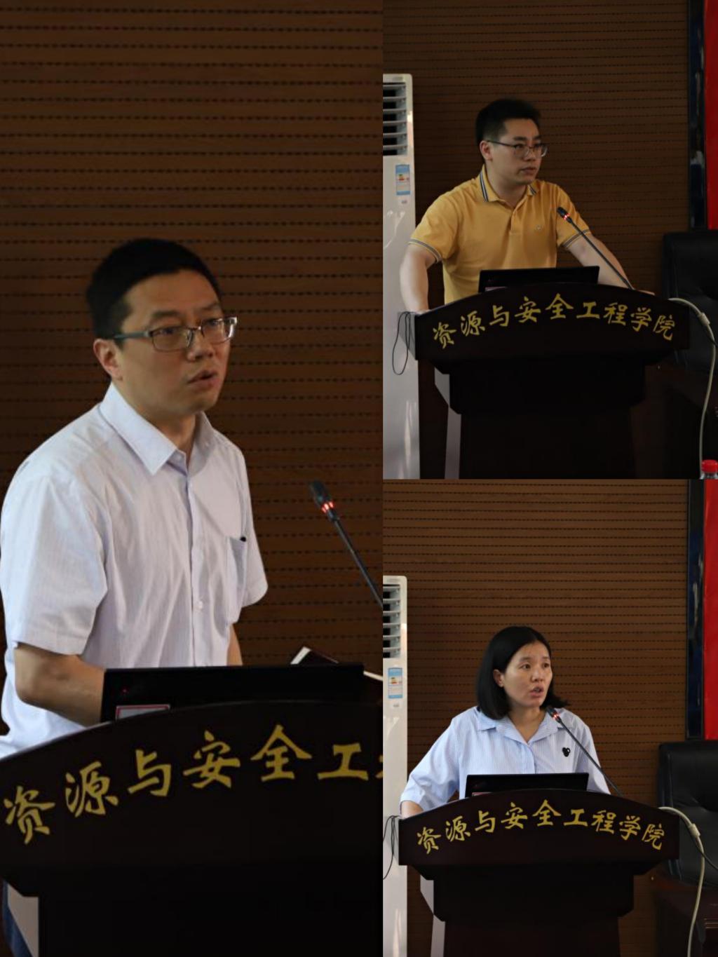 随后我院两位教师就课程思政建设项目进展情况、存在问题进行了交流。首先胡建华教授以《露天采矿技术》的绪论教学为例,阐述了如何在课程中将思政元素和专业知识相结合。从绿色采矿技术,引出“绿水青山就是金山银山”的先进理念,并从创新、协调、绿色、发展、共享五大发展理念的角度剖析专业内容,构建出既有专业特色,又有思政元素的综合性课程。接下来张舒老师分享了《安全学原理》课程教学中的一些创新,从专业知识点中发掘思政元素,挖掘教学内容中蕴含的哲学思想,以讲故事的形式将思政元素融入专业教学,实现专业知识和思政元素的有机融合,达到润物细无声的效果。随后,学院教学副院长黄锐从课程思政建设目标、具体实施方案、教学激励措施、教学保障条件等四个方面解读了我院“课程思政建设实施方案”。