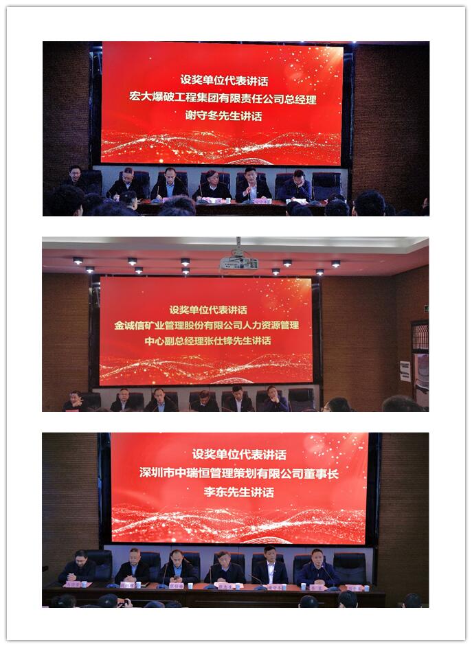 宏大爆破工程集团有限责任公司总经理谢守冬先生、金诚信矿业管理股份有限公司人力资源管理中心副总经理张仕锋先生和深圳市中瑞恒管理策划有限公司董事长李东先生分别代表设奖企业发言。他们首先向所有获奖的学生表达了衷心的祝贺,然后深情地谈到了自己或单位与taptap的情感渊源,高度肯定了taptap各方面所取得的巨大成绩,表示设立奖励金助力教育事业的发展是企业义不容辞的责任,他们勉励大家:要再接再厉,力争上游,还要提高眼界,放眼全球,更要不忘初心,报效国家。同时还表示大家要同企业保持联系,加强交流。
