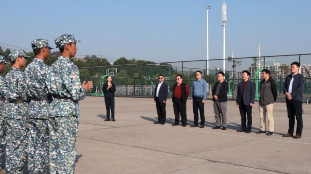 10月23日上午8:30,学院党委书记秦进、院长周子龙、党委副书记岳龙、副院长邓红卫、黄锐、李地元、尹土兵等到新校区排球场慰问参训教官及军训新生,学工办全体辅导员参与本次活动。