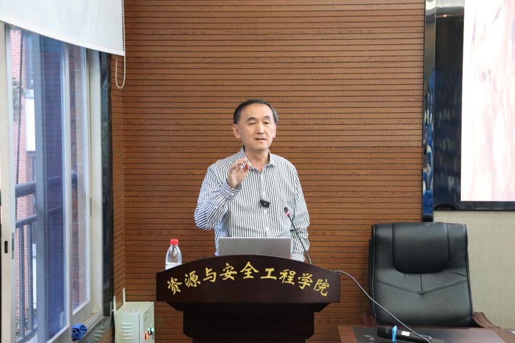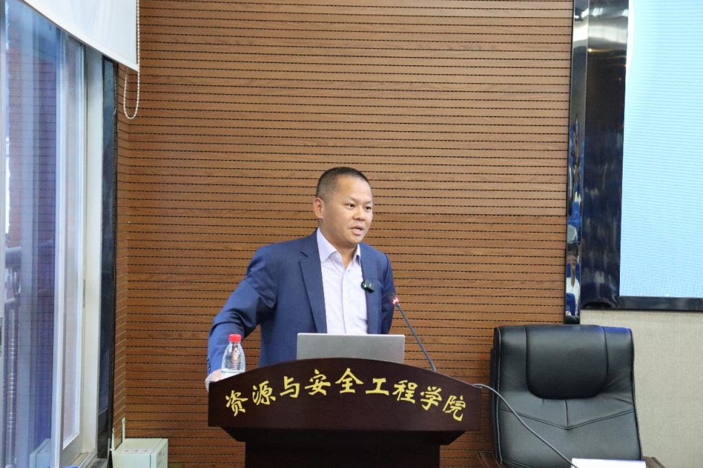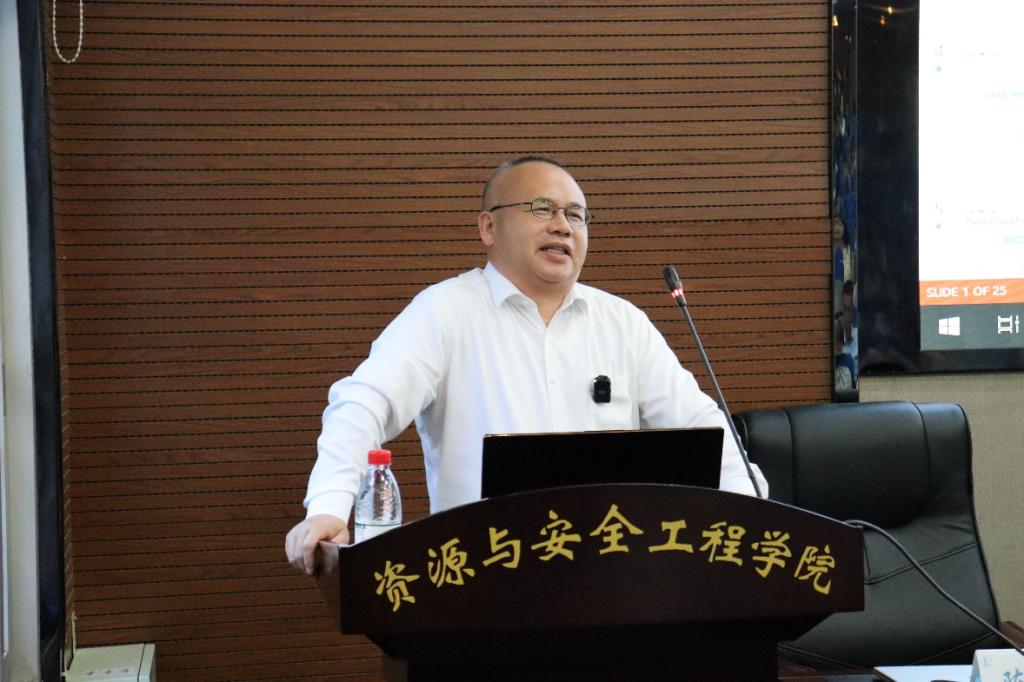 喻长智博士毕业于我校采矿工程专业,曾在Barrick、Rio Tinto、Newcrest等矿业公司工作,任高级爆破工程师、设计师、采矿经理、项目经理、顾问、矿长、项目董事等职位。他以《露天开采技术与实践》为主题,为师生分享了在澳大利亚采矿工作中所运用的技术手段、冲击应力波传播方式等知识,并介绍了针对爆破的设计优化方法及现阶段研究中的露天矿采剥专利技术等。