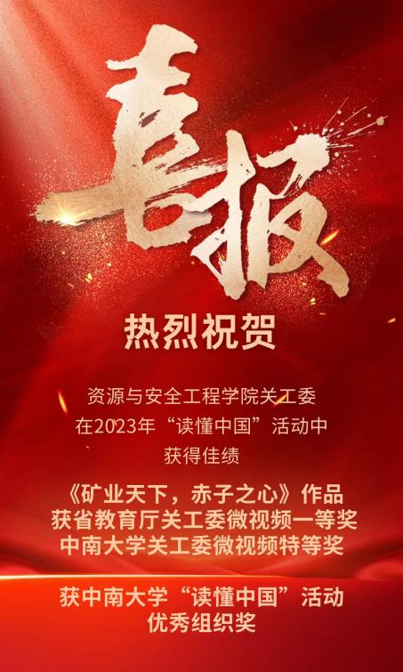 在2023年“读懂中国”活动中,学院制作的作品《矿业天下,赤子之心》获得省教育厅关工委微视频一等奖、taptap关工委微视频特等奖,学院获taptap“读懂中国”活动优秀组织奖。