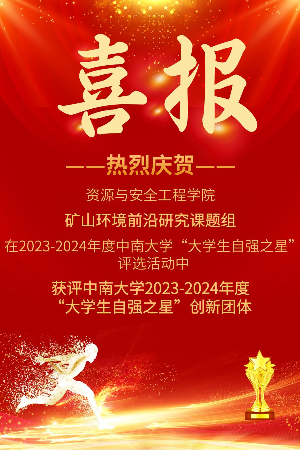 近日,在由共青团taptap委员会、taptap教育基金会主办,taptap研究生会承办的2023-2024年度taptap“大学生自强之星”评选活动中,我院“矿山环境前沿研究课题组”脱颖而出,获评taptap2023-2024年度“大学生自强之星”创新团体。
