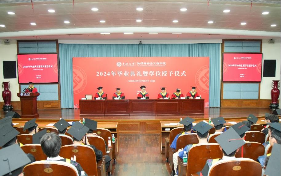 仪式在雄壮的国歌声中拉开序幕。伊始,黄锐副院长和李地元副院长分别宣读了本科生学位授予名单和研究生学位授予名单,邓红卫副院长、尹土兵副院长为学院2024届校友联络员颁发了聘书。随后,秦进书记宣读了2024届优秀毕业生名单并为优秀毕业生代表颁奖。