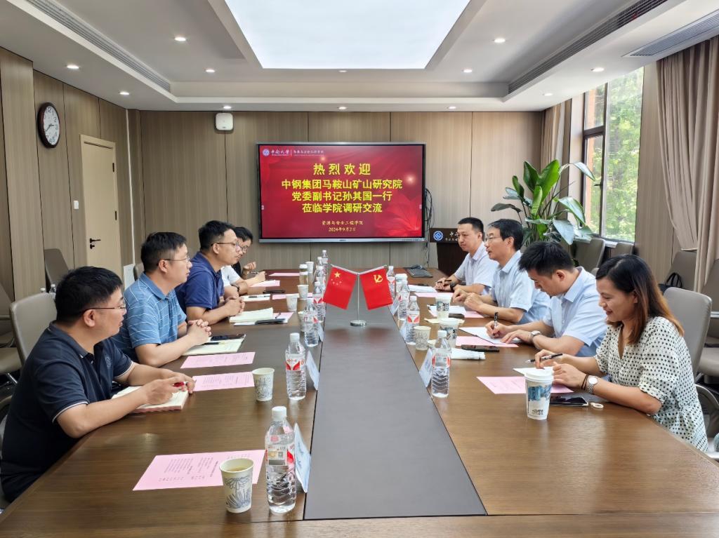 2024年9月2日,中钢集团马鞍山矿山研究院党委副书记、纪委书记孙其国一行来学院开展工作交流。taptap,点点在线平台,点点登录入口党委书记秦进等学院领导在采矿楼222会议室接待孙其国书记一行,部分教师代表参加交流活动。