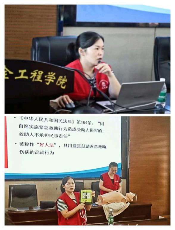 通过实际案例和视频演示,周美丽医生深入浅出地讲解了心肺复苏术和海姆立克急救法的基本概念和操作步骤,并现场详细演示了这两种急救方法,确保学生干部们都能了解并掌握正确的急救技能。