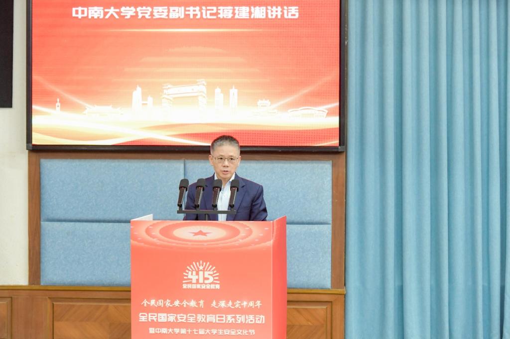 4月11日,全民国家安全教育日系列活动暨taptap第十七届大学生安全文化节启动仪式在岳麓山校区国际报告厅举行。本次活动由学校联合湖南省委办公厅、长沙市委办公室、湖南湘江新区党政综合部共同主办,校学工部、保卫部、团委、资安院共同承办。校党委副书记蒋建湘、学工部部长欧旭理、保卫部部长张国栋、团委书记刘正宗、资安院党委书记秦进以及湖南省委办公厅、长沙市委办公室、湖南湘江新区党工委相关领导出席,14所驻湘江新区高校师生代表500余人参加。