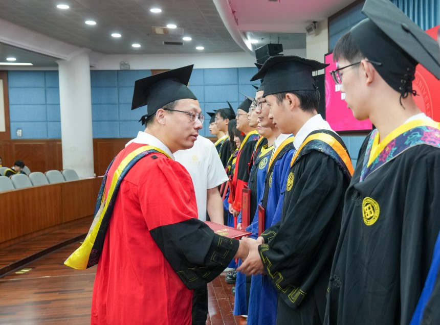 仪式在雄壮的国歌声中拉开序幕。典礼伊始,黄锐副院长和李地元副院长分别宣读了本科生学位授予名单和研究生学位授予名单,尹土兵副院长为学院2025届校友联络员颁发了聘书。